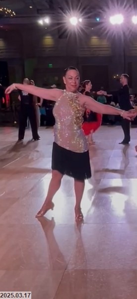 I started dancing just before my 50th birthday. I have done multiple competitions (Arthur Murray only), won several 1st place and finalist medals. I am currently Full Bronze but have been wading in the Silver level pool for a bit. I also love cumbia, as well as latin hustle, Merengue salsa and Night Club 2 step. I am not too shabby a CW 2 step and a few other CW dances. I am not the biggest fan of line dancing though. I have a mixed emotions with Bolero, mambo Vals, Quick step,Milonga and Paso Doble. Samba i have stronger feelings for.